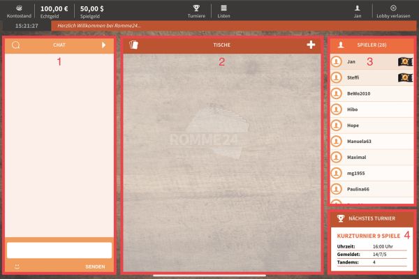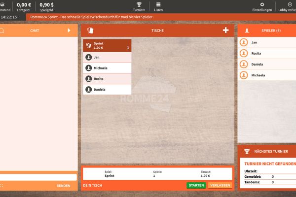 Romme Listen und Turniere mit Freunden online spielen