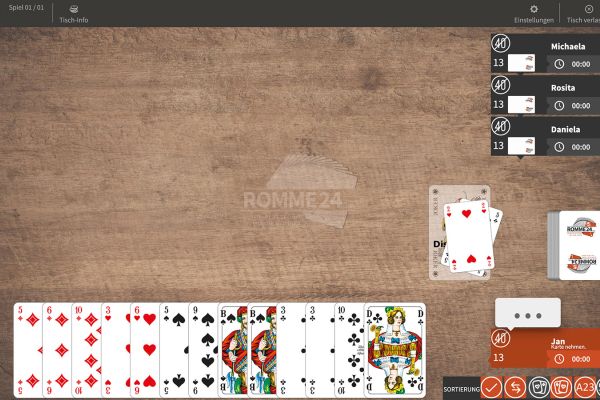 Schön, dass du da bist! Bei uns kannst du rund um die Uhr kostenlos online Rommé spielen.