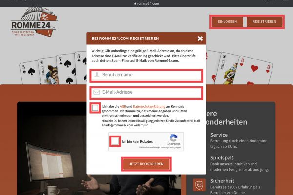 Wie du dich registrierst und wie du in die Lobby gelangst, erklären wir dir gerne weiter unten auf dieser Seite. Wenn du auf der Suche nach den Rommé-Regeln bist oder wissen möchtest, wie wir das Handling auf Romme24.com gestaltet haben, findest du diese und viele weitere Informationen in unserem Bereich Wissenswertes ganz unten auf dieser Seite.